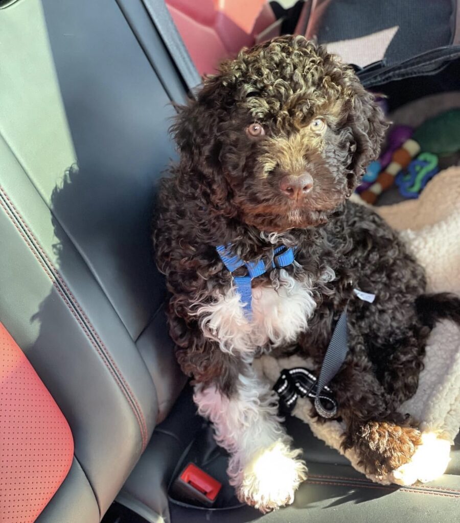 Raised indoors in a family environment, Clea is already comfortable with everyday household life. She enjoys calm interactions, soft voices, and moments of connection just as much as playful curiosity. Her beautiful curly coat and expressive face are classic traits of the Lagotto Romagnolo, but it’s her steady, sweet temperament that truly sets her apart.