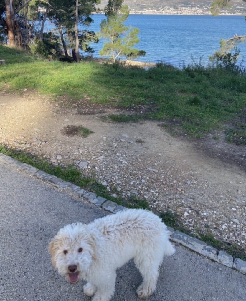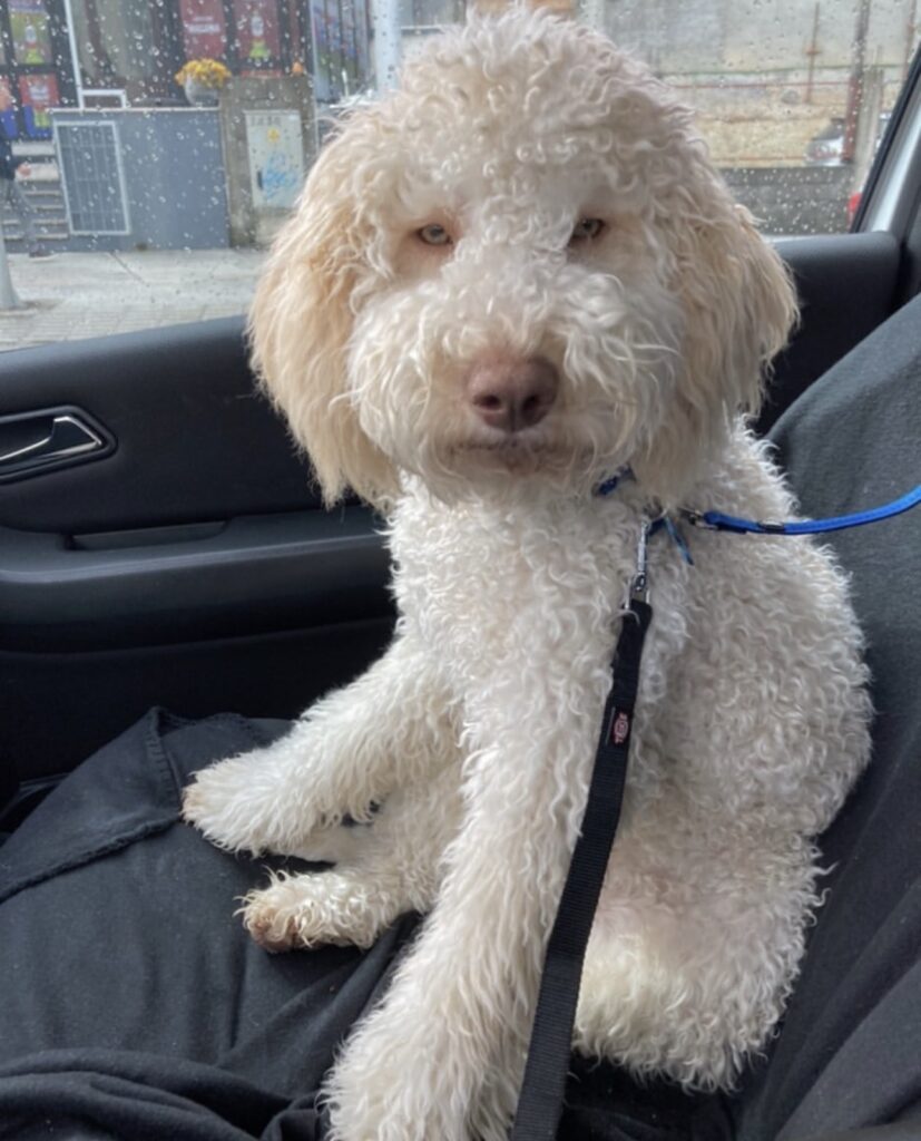Carry is one of those dogs that makes people stop and look twice. Entirely white, calm to her core, and already trained. She is a rare find in every sense of the word. A young adult Lagotto Romagnolo who arrived ready.