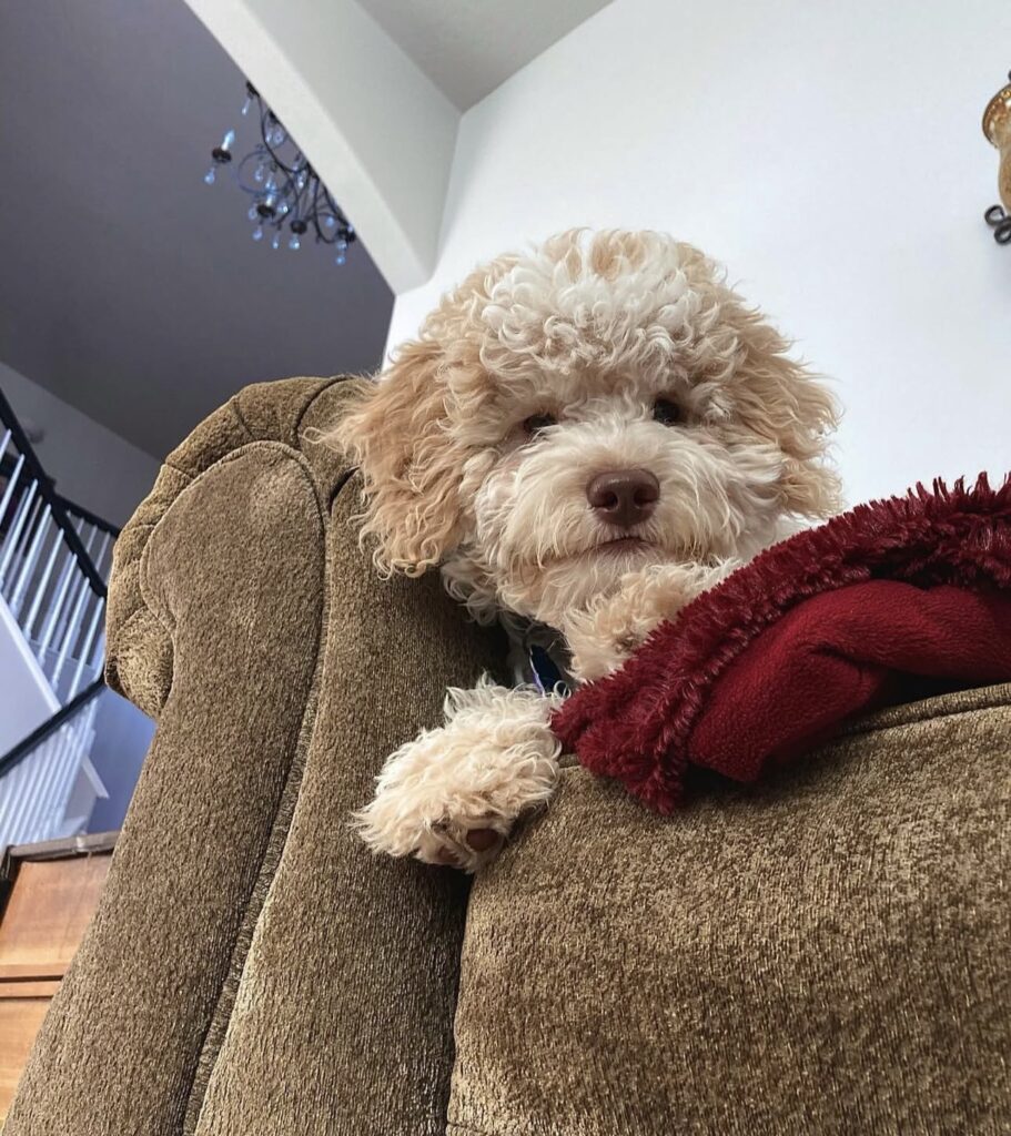 Teddy stands out instantly, not only for her sweet personality but also for her rare, pure white coat, which is uncommon in the Lagotto Romagnolo breed. Finding a truly white Lagotto isn’t easy, and Teddy carries that rarity with quiet elegance.