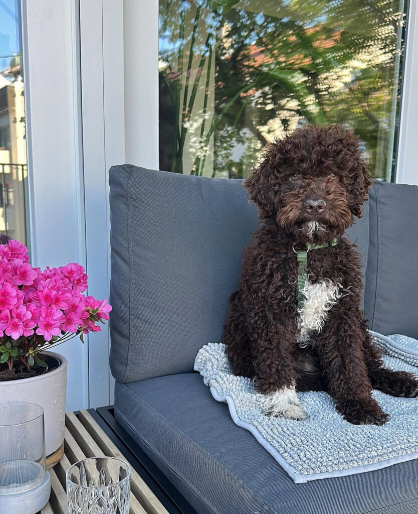 His personality is lively and charming. Tony enjoys going outdoors, discovering new smells, feeling the wind on his face and acting like he’s on an important mission. He walks confidently on the leash and loves long strolls, the kind where he stops every two steps because he “found something interesting” again. Very Lagotto of him.